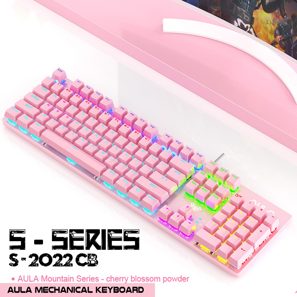 Keyboard Gaming Mechanical AULA S-2022 PINK– RGB Display Rainbow- Macro Software - KRGD Blue Switch