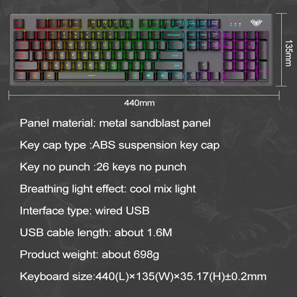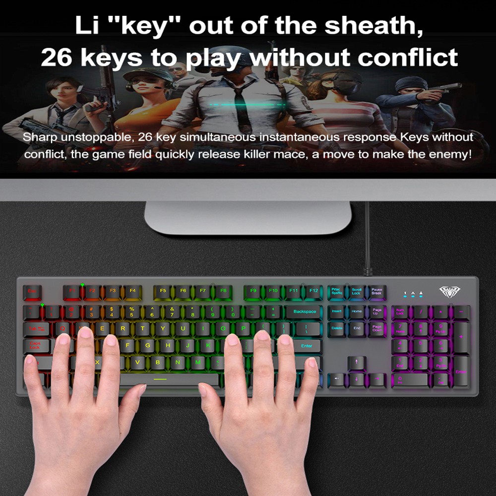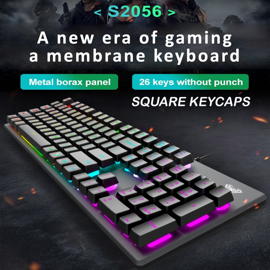 Keyboard Gaming Membrane AULA S-2056 Square- New LED R Backlight - Macro Software-Exquisite Keyboard